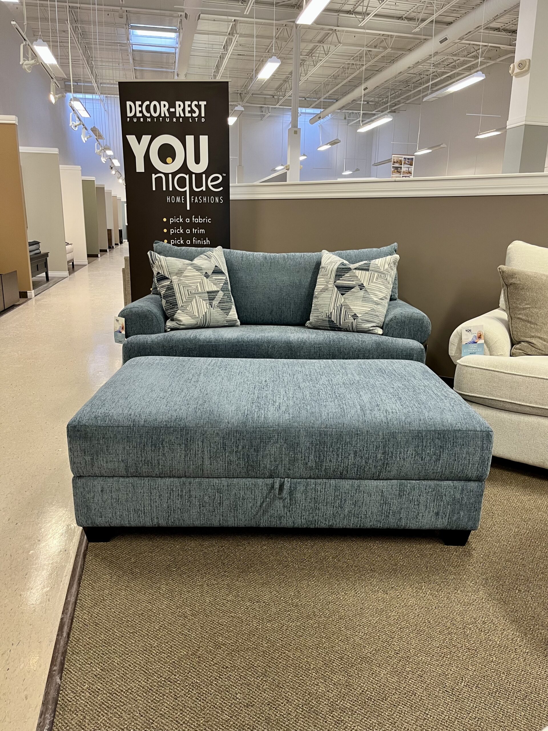 Decor-Rest is available in over 400 different Fabrics, 80 Leather colours to select from. Canadian Made with a Lifetime Warranty on the Solid Maple Frame and the Sinuous Springs!