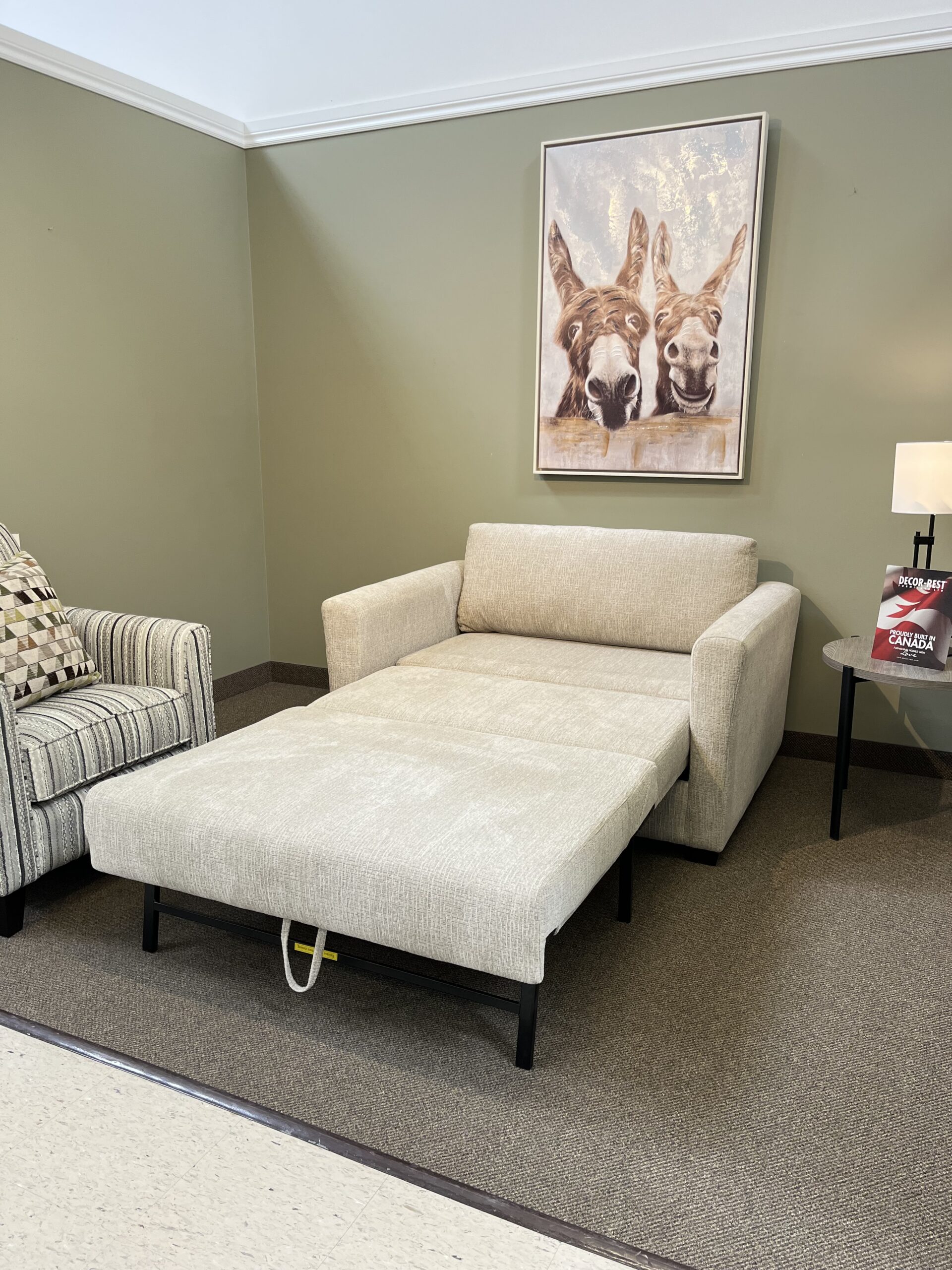 Decor-Rest is available in over 400 different Fabrics, 80 Leather colours to select from. Canadian Made with a Lifetime Warranty on the Solid Maple Frame and the Sinuous Springs!