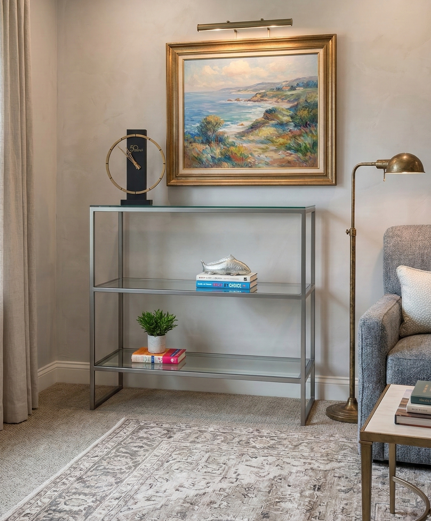 Items: Electra Bookcase w/Glass shelves & metal frame (P-EL74G)