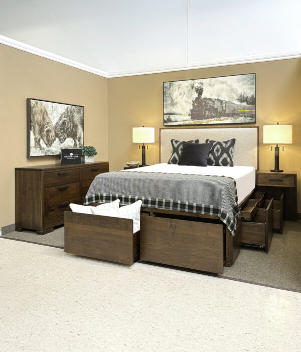 – AlaCarte Lisbon Queen Fabric Headboard 12 Drawer Condo Bed (4 on end/4 each side)
