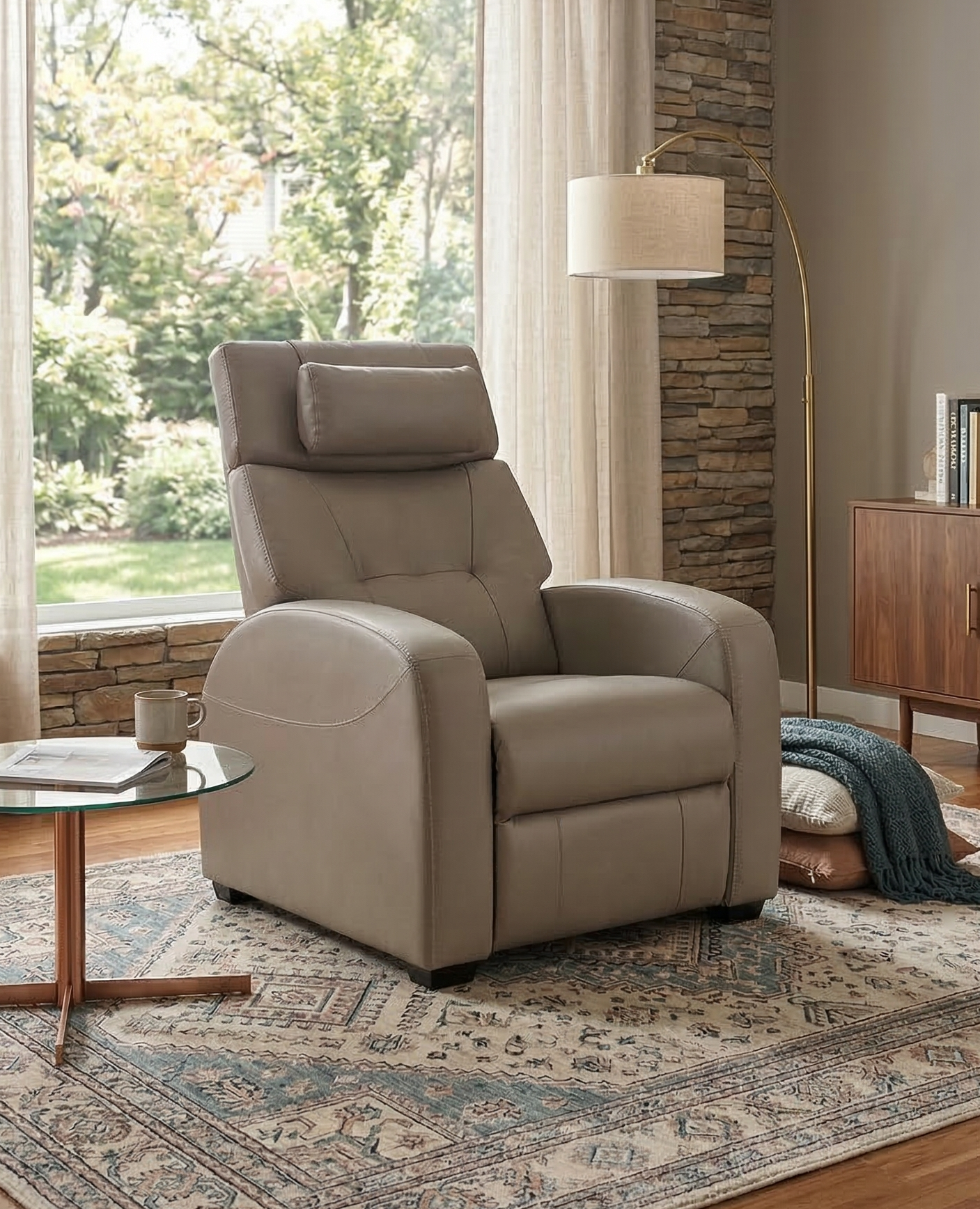 • Power recline with a brushed metal button switch